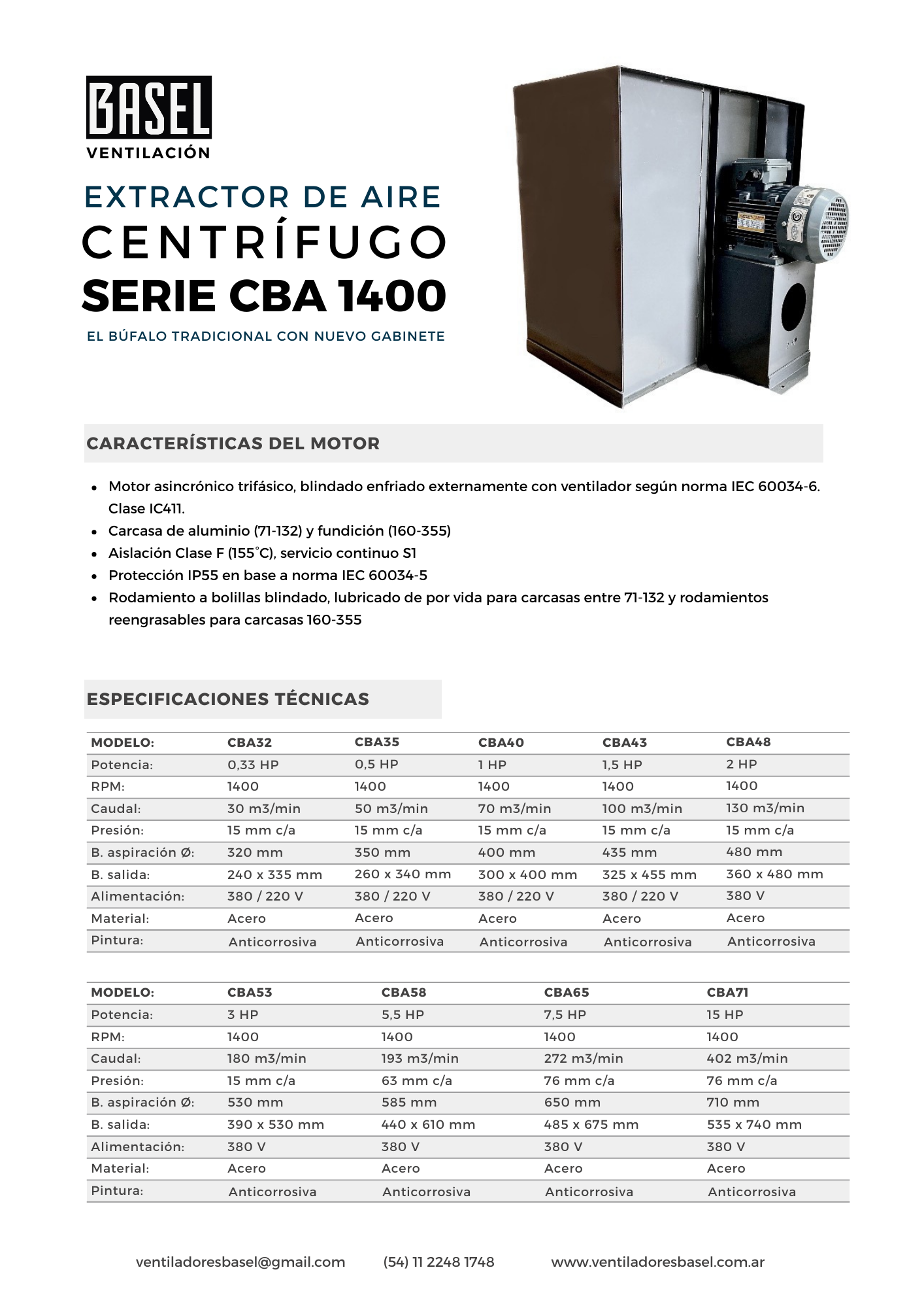 EXTRACTOR CENTRÍFUGO - SERIE CBA 1400